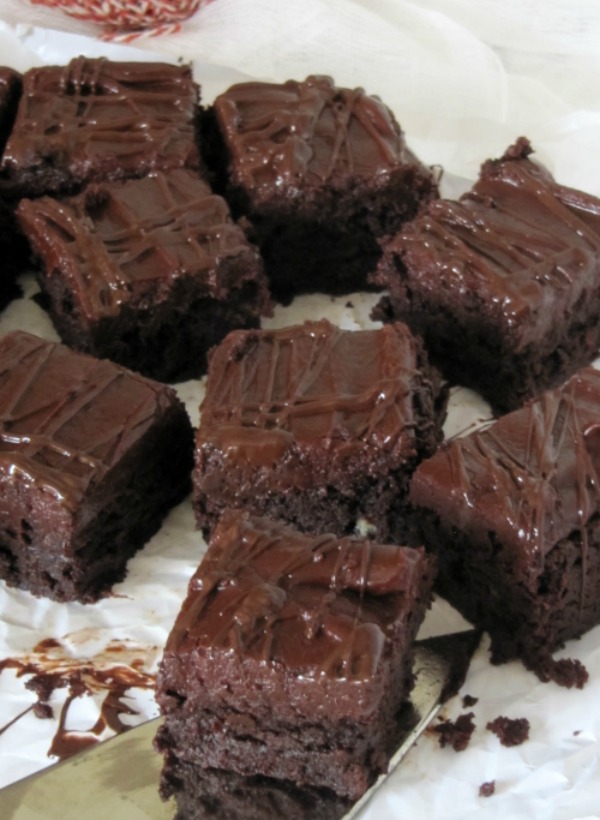 Another day, another brownie. I personally never tire of trying new brownie recipes in my quest for the most "perfect" fudge brownie. I have tasted a lot of brownies and I think this one might be very close to perfect. These brownies are rich, fudgy, moist, studded with chocolate and then topped of with ganache. Could it get any better?